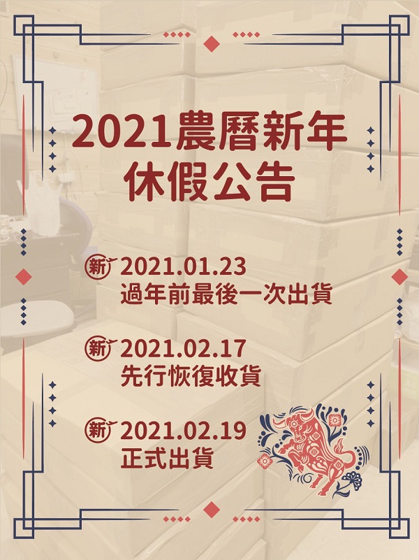 因受疫情政策影響,今年需提早休假過年,造成不便深感抱歉!