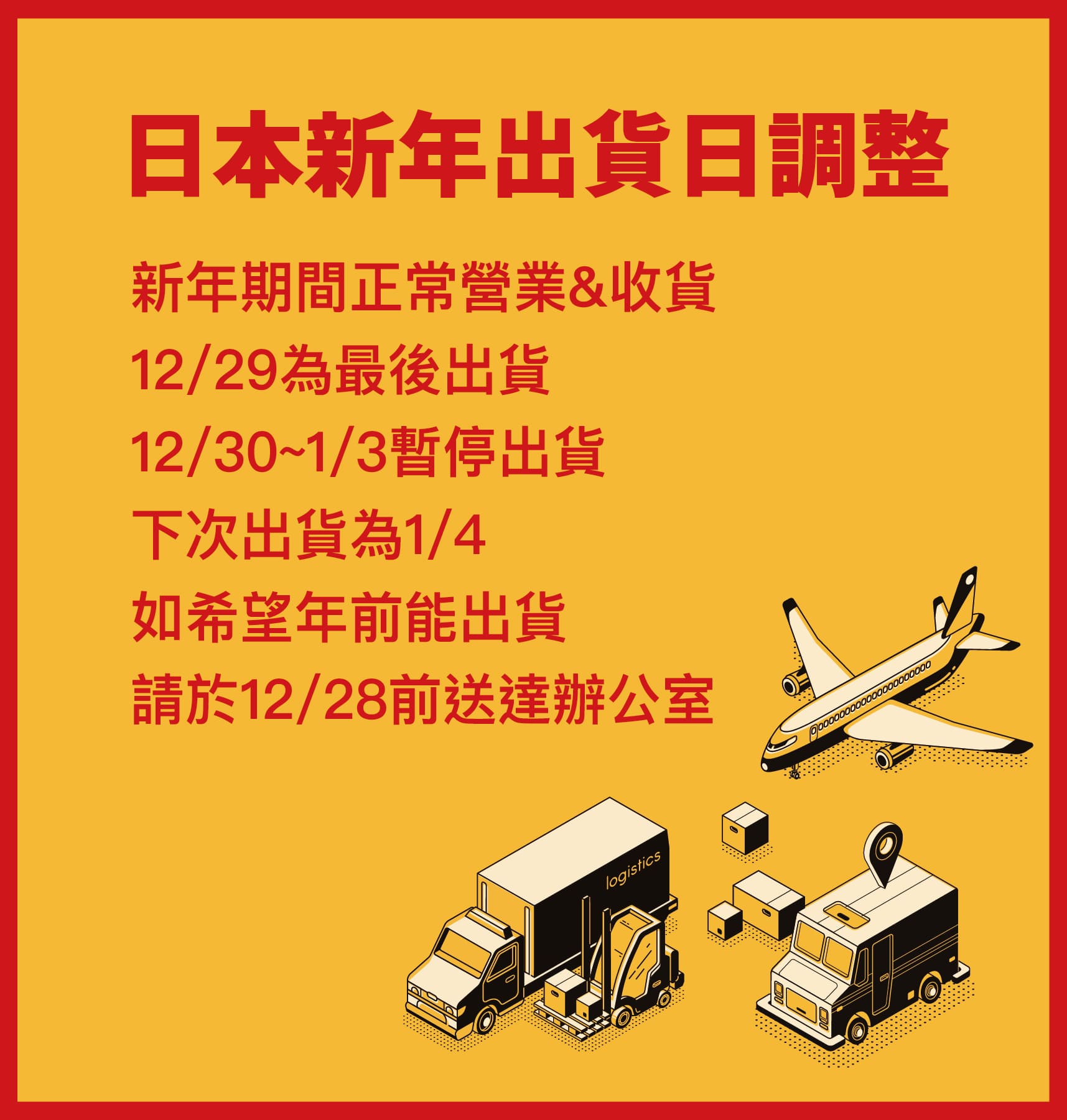 日本新年出貨日調整