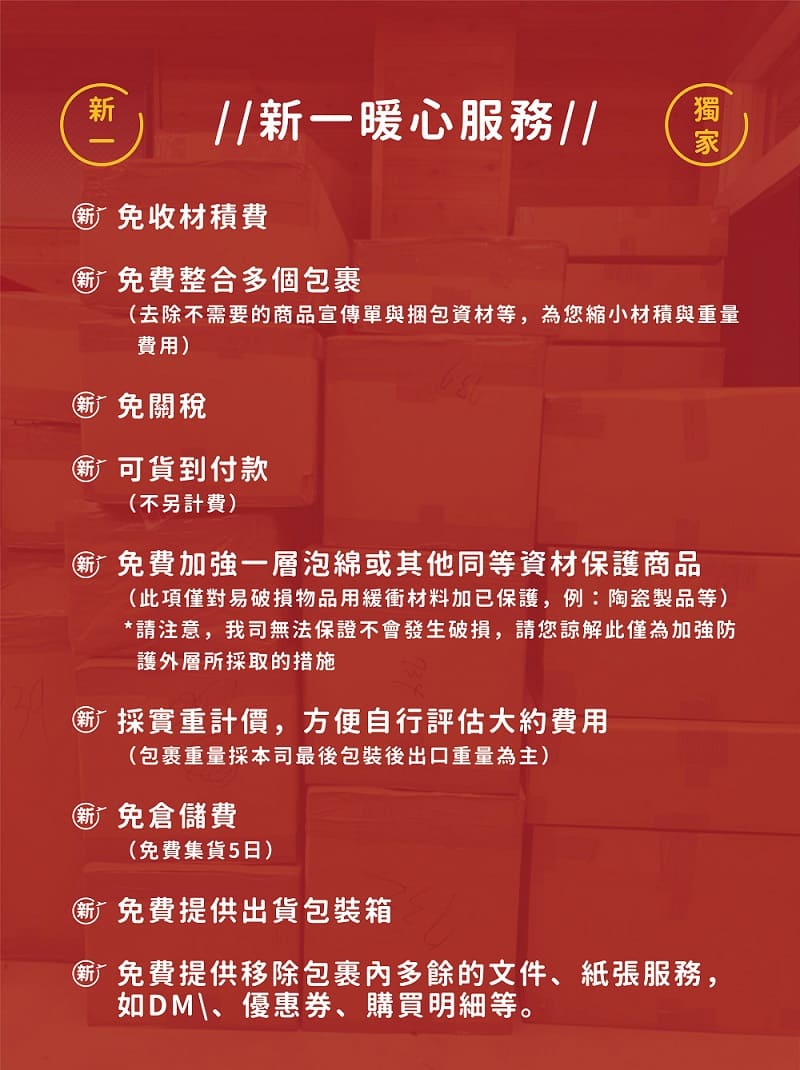 但想到運送回台灣總是害怕可能會買十個破到剩兩三個,關於這點,新一已經幫你想好了!